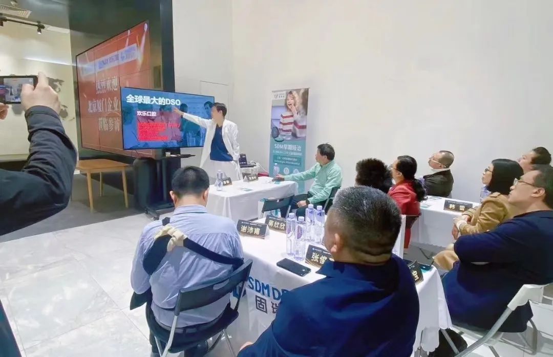 交流中各位企业家表示口腔医疗行业十分具有发展前景,并就自身和家人相关的口腔问题进行了咨询,卢总一一做了解答,并现场送福利给大家。