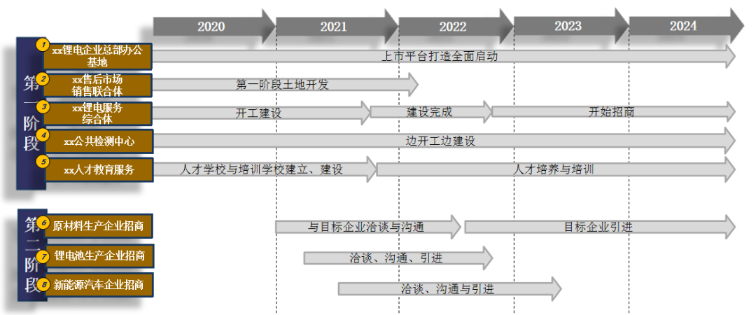 xx市2020-2024年各重点锂电产业项目总体计划与进度
