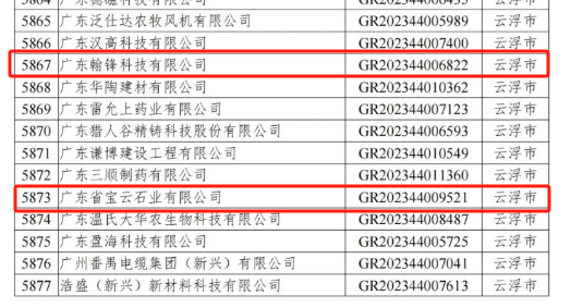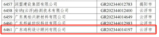 在广东省科学技术厅、广东省财政厅、国家税务总局广东省税务局公布的广东省2023年高新技术企业名单中,我会广东省宝云石业有限公司、广东翰锋科技有限公司、广东鸿利设计顾问有限公司等三家企业荣登榜单。