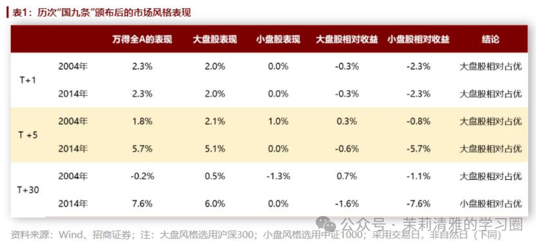 与此同时,多家机构表示, 新“国九条” 在上市公司的分红、 回购、市值管理上做了较为严格的要求,绩优龙头、高股息板块有望受益。从市场风格演绎情况来看,前两次“国九条”颁布后,短期内,大盘风格相对占优。从行业表现来看,前两次“国九条”后,传统行业、钢铁、非银、煤炭、有色金属等行业相对占优。