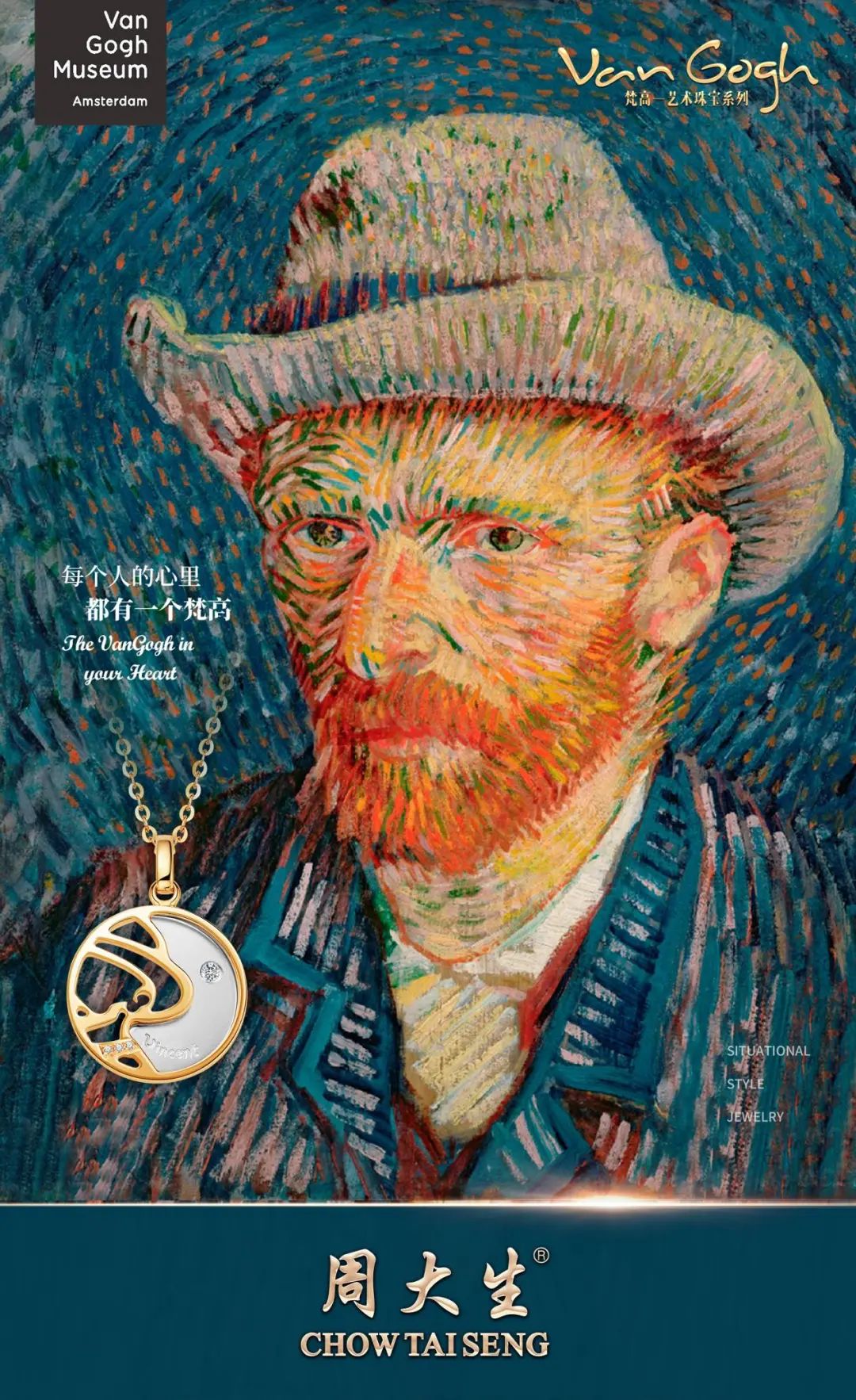 近年来,周大生珠宝携手国际知名艺术博物馆,联名推出了大师艺术珠宝——炽热梵高系列、莫奈花园系列,具有超高的艺术审美价值,兼具时尚佩戴功能。