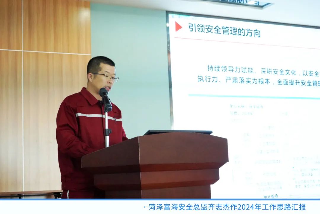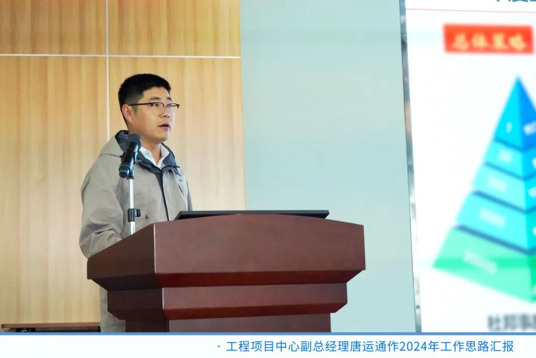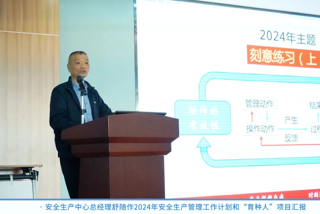 工程项目中心副总经理唐运通进行安全经验分享。安全生产中心总经理舒随对2024年安全生产管理工作计划和“育种人”项目内容进行汇报。各子公司经营层对2024年工作思路进行汇报。