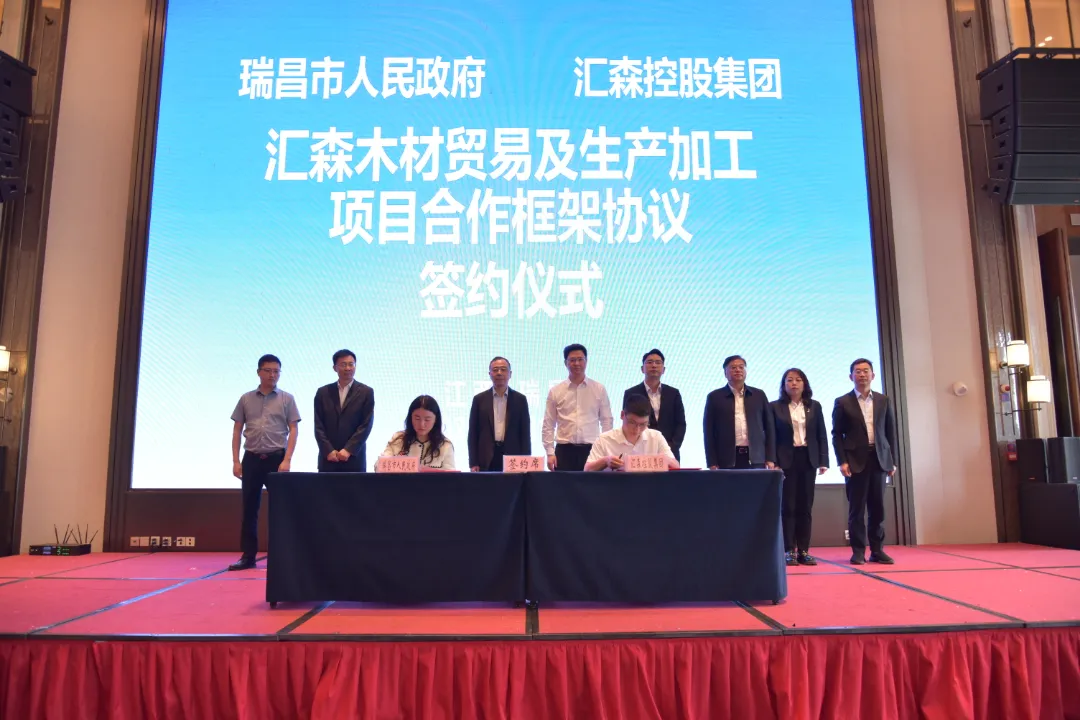 孙雅岑与魏煌晖代表双方签署项目合作框架协议。根据协议,汇森控股集团将依托瑞昌市华中木业产业园,开展木材贸易及板材等产品的生产、加工、销售,打造本区域最具优势的木业产业生态供应链企业。