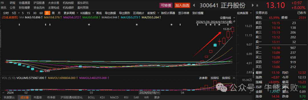 TMA(偏苯三酸酐)价格近期加速上行,根据百川盈孚,截至2024年4月19日,TMA价格已上行至2.6万元/吨,较2月下旬1.53万/吨上涨69%,同比2023年4月上涨108%。华东地区TMA市场有价无货,个别成交继续冲高2.7万元/吨。A股市场上,偏三甲苯-TMA-TOTM一体化产业链龙头正丹股份近9个交易日股价累计最大涨幅达198%,拥有4万吨TMA产能的百川股份2月迄今股价累计最大涨幅122%。