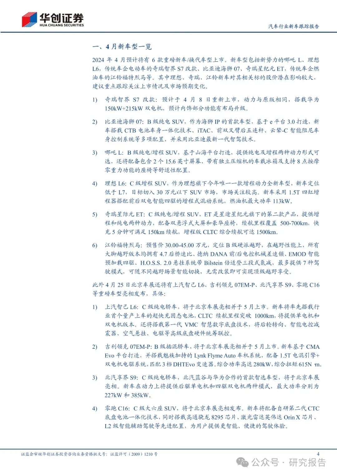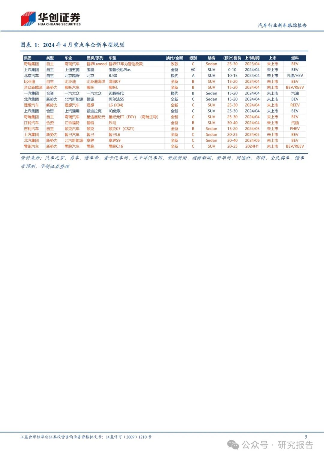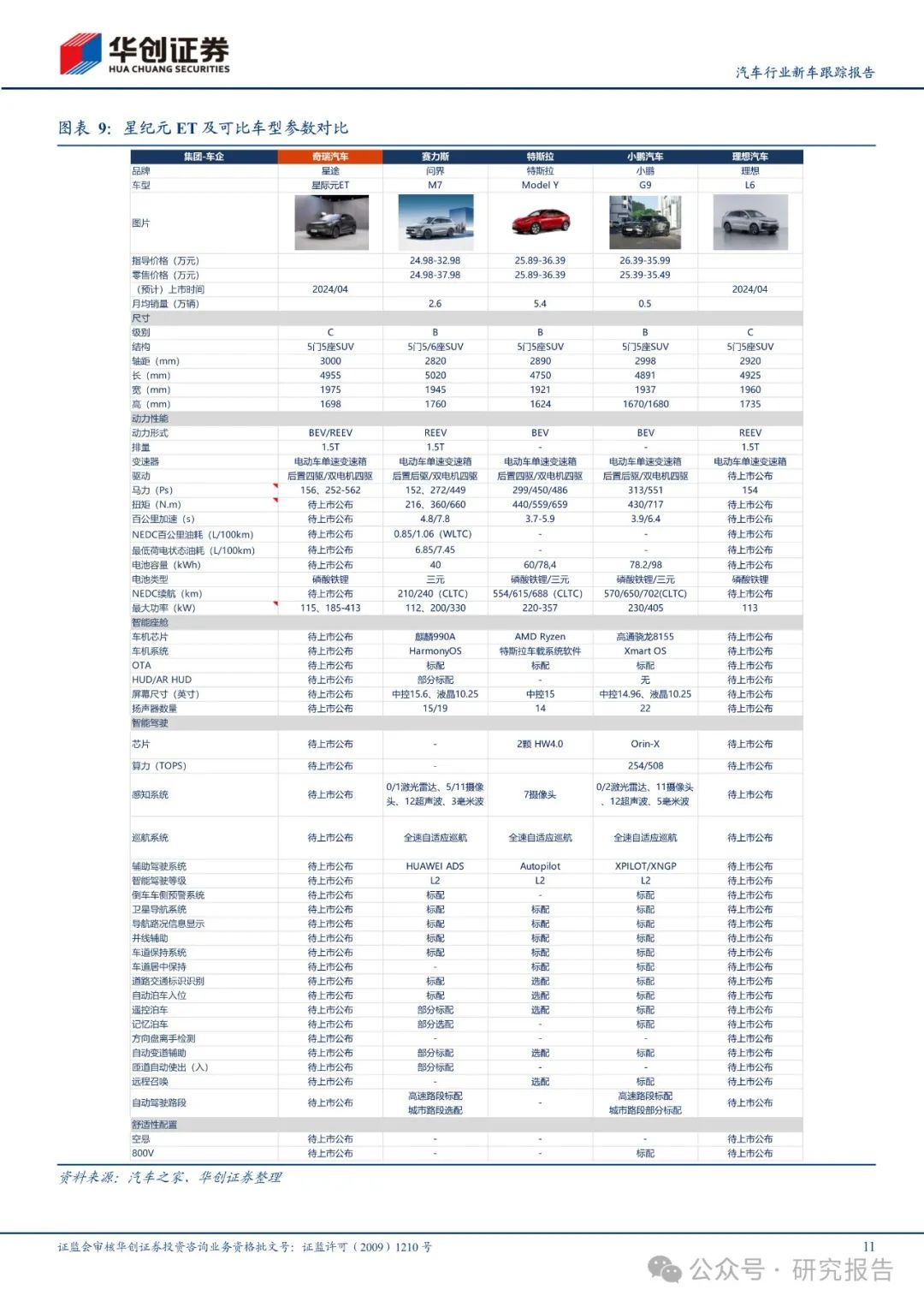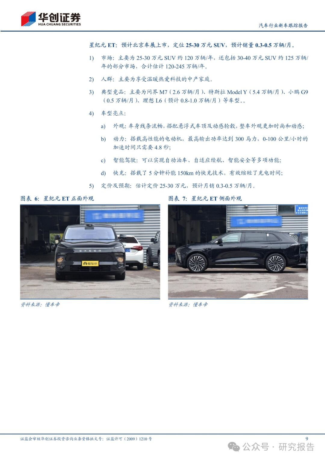 2奇瑞星纪元 ET:预计北京车展上市,定位 25-30 万元 SUV,预计销量0.3-0.5 万辆/月。市场主要为 25-30 万元 SUV 约 120 万辆/年,还包括 30-40 万元 SUV 约 125 万辆/年的部分市场,合计估计 120-245 万辆/年。星纪元 ET 受益于华为智能化配置及 IP 加持,有望打开销量新高度.