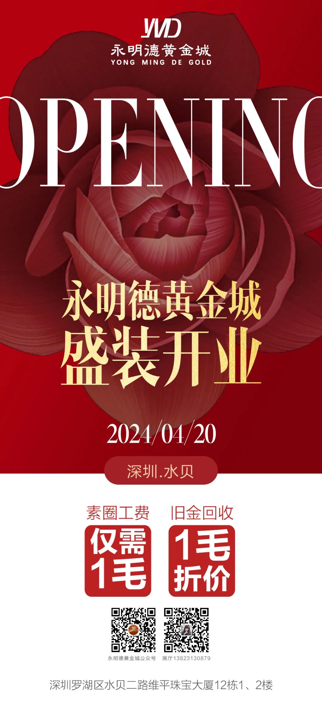 开业期间,永明德黄金城推出开业让利大酬宾,回馈新老客户活动,推出了一系列开业促销政策:古法素圈工费仅需1毛钱(上限500克),来料1小时极速出货,旧金回收仅需1毛折价,开业进店,0元开户,存工费,返工费;可谓惊喜连连,诚意满满。