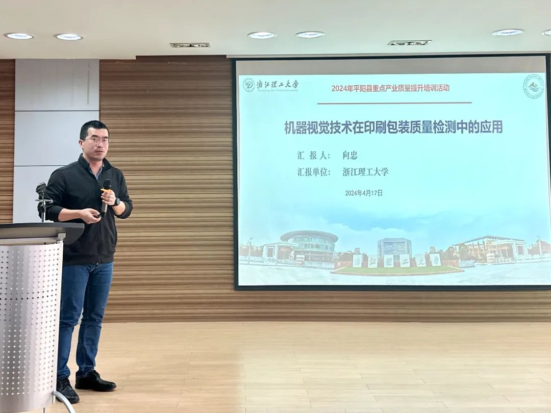 我院向忠院长对印刷包装装备行业的现状及其发展趋势进行了深入剖析,同时探讨了机器视觉技术在质量检测环节中的实际应用,并针对企业技术升级和增强市场竞争力的需求,提出了切实可行的建议,弥补了平阳县印刷包装装备制造企业在标准化建设方面的知识储备不足,为平阳县印刷包装装备产业链的质量提升和标准体系构建提供了坚实的理论基础,从而有力推动了产业的数字化与智能化转型进程。
