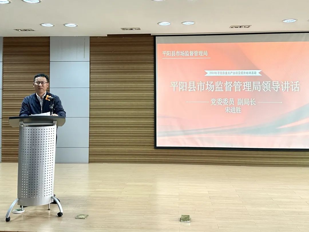 4月17日,由平阳县市场监督管理局主办,浙江省标准化研究院、浙江省电机动力学会、浙江省纺织工程学会、浙江理工大学平阳研究院、杭州汉德质量认证服务有限公司承办的2024年平阳县重点产业质量提升培训会在浙江理工大学平阳研究院七楼顺利举办。