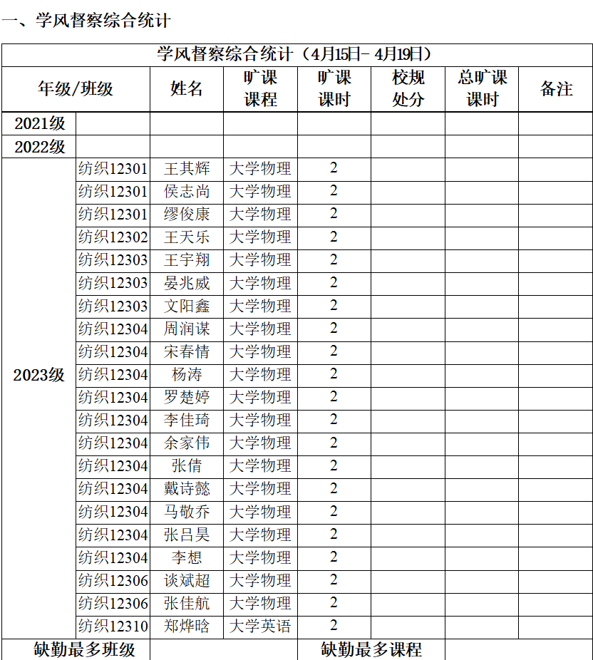 纺织学院第八周学风督察专项通报