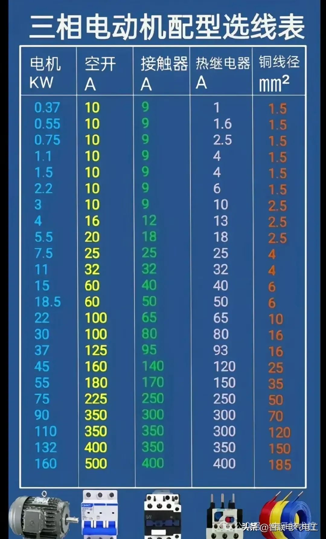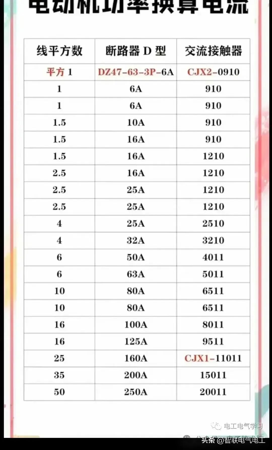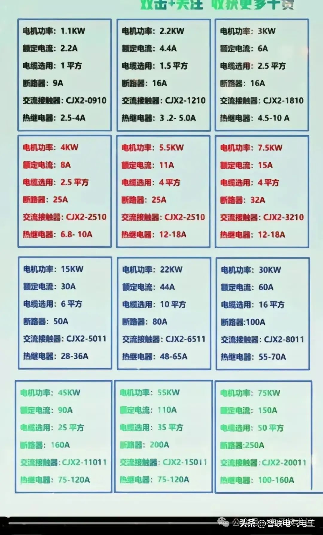 16、电机功率对应断路器、交流接触器、热继电器大小