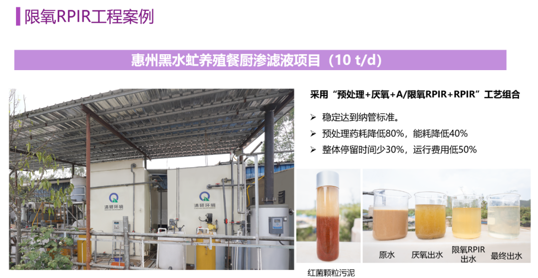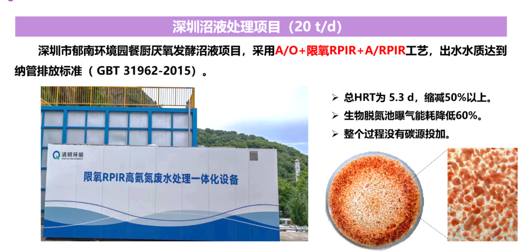 限氧RPIR快速脱氮技术具备大量节省曝气能耗,脱氮效率高,占地面积少,污泥产量极少等优势,为客户带来效率和效益的极大提升。在餐厨沼液,养殖废水,食品深加工废水,光伏电池/PCB行业高氨氮废水等处理领域具有显著的应用优势。