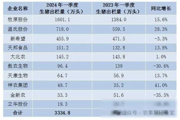 那么,在行业去产能的大背景下,各家企业表现如何呢?这里,我们得重点提一下那些龙头企业。就拿牧原股份来说吧,一季度它们的出栏量可是达到了惊人的1601.1万头,同比增长了15.6%!这个数字,简直让人瞠目结舌。而且,牧原的出栏量还占到了10家主要上市猪企总销量的近一半,可见其在行业中的领先地位。当然,温氏股份也不甘示弱,一季度出栏生猪718.0万头,同比增长了28.3%,增长速度也是相当迅猛。