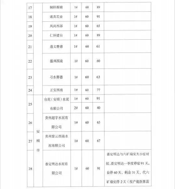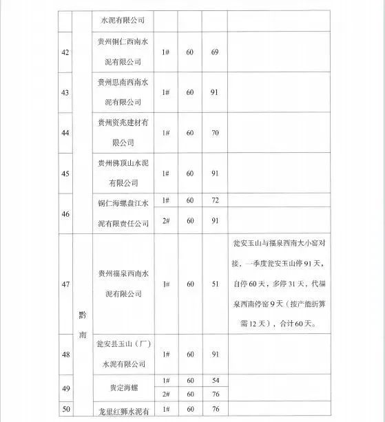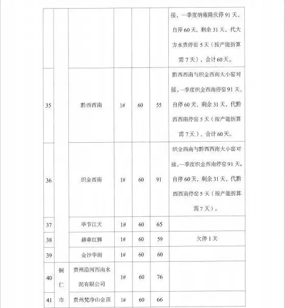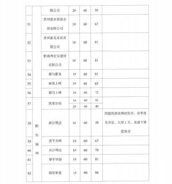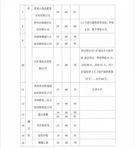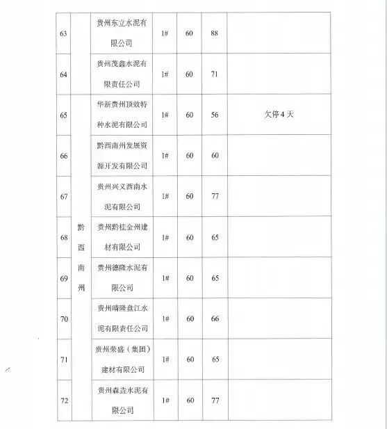 个别企业未能按计划执行停窑工作,存在对错峰生产工作重视程度不够,执行不坚决的问题,影响全省工作落实。据调度,一季度有4家水泥企业未完成停窑60天计划,分别是:贵州昊龙胜境建材有限责任公司少停5天,华新贵州顶效特种水泥有限公司少停4天,赫章水泥厂有限公司少停1天,麻江明达水泥有限公司少停1天。华新贵州顶效特种水泥有限公司已连续多次错峰生产执行不到位。