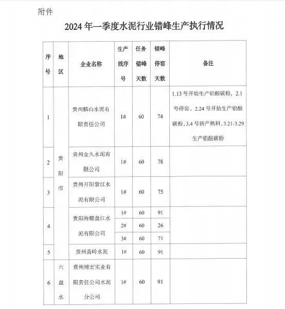 4月18日,贵州省工业和信息化厅、贵州省生态环境厅联合发布《关于2024年一季度水泥行业错峰生产情况的通报》称,全省水泥行业错峰生产计划一季度执行情况总体较好,个别企业未能按计划执行停窑工作,存在对错峰生产工作重视程度不够,执行不坚决的问题,影响全省工作落实。