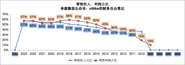 从2023年的经营结果来看,招行零售业务的地位还是稳固的,还处于历史的高位。