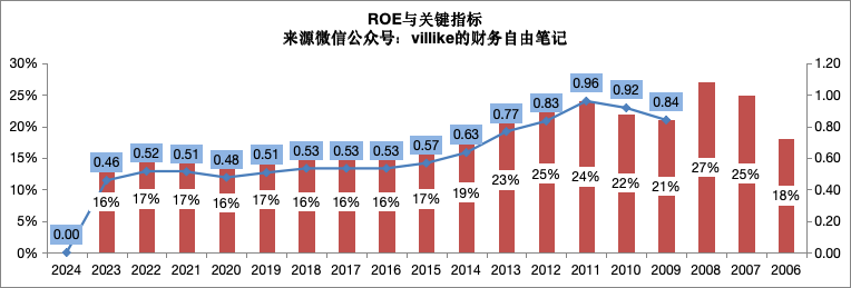 1、2023年,招行的经营结果数字上是看是基本稳健的,ROE略有下滑到16%,分红比率略有上升,关键比率略有下降,虽然调整后的ROE大约也就17%多一些,但招行基本还是“留存收益利滚利”的较好代表。