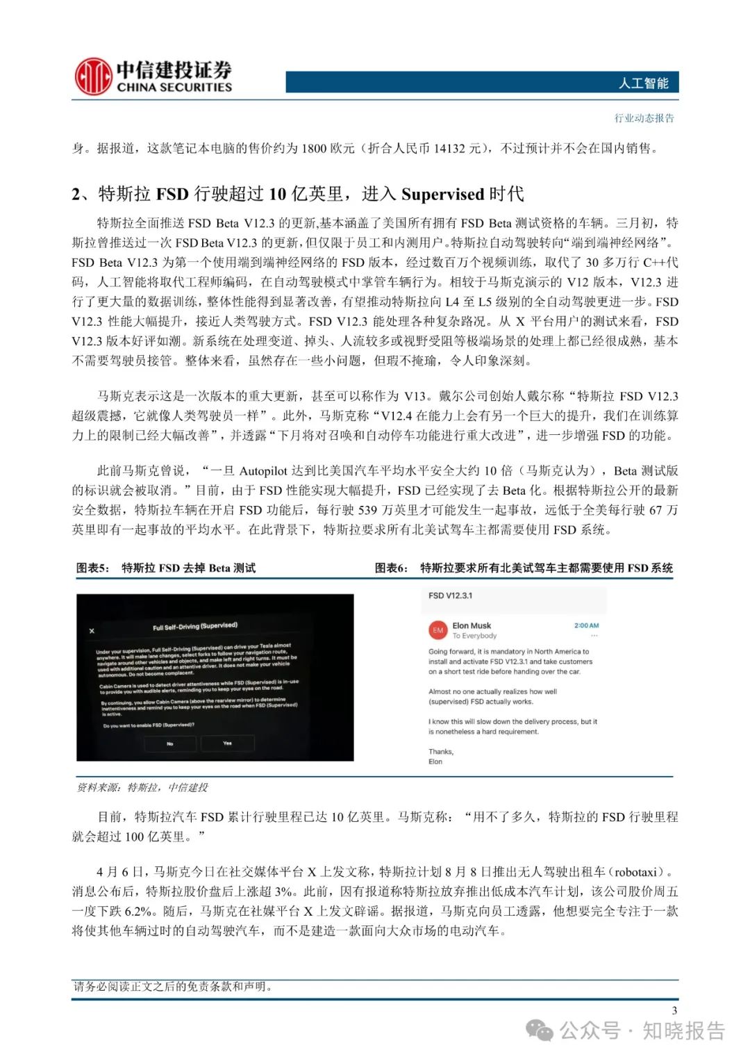 特斯拉全面推送 FSD Beta V12.3 的更新,FSD Beta V12.3为第一个使用端到端神经网络的 FSD 版本。目前,由于 FSD 性能实现大幅提升,FSD 已经实现了去 Beta 化,FSD 进入 Supervised时代,而且正式提出了 FSD V12 的概念。特斯拉车辆在开启 FSD功能后,每行驶 539 万英里才可能发生一起事故,远低于全美每行驶 67 万英里即有一起事故的平均水平。