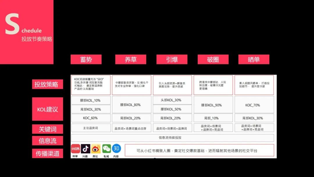 最后,关于投放策略,我们有详细的图表规划如何在各个阶段调整达人的类型和投入比例,确保每一步都精准有效。