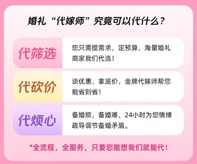 提供酒店、婚纱摄影、婚礼策划、婚品购置等方面的建议,甚至还提供“代砍价”服务;