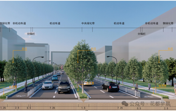 渠化标准段道剖面图绿化设计图