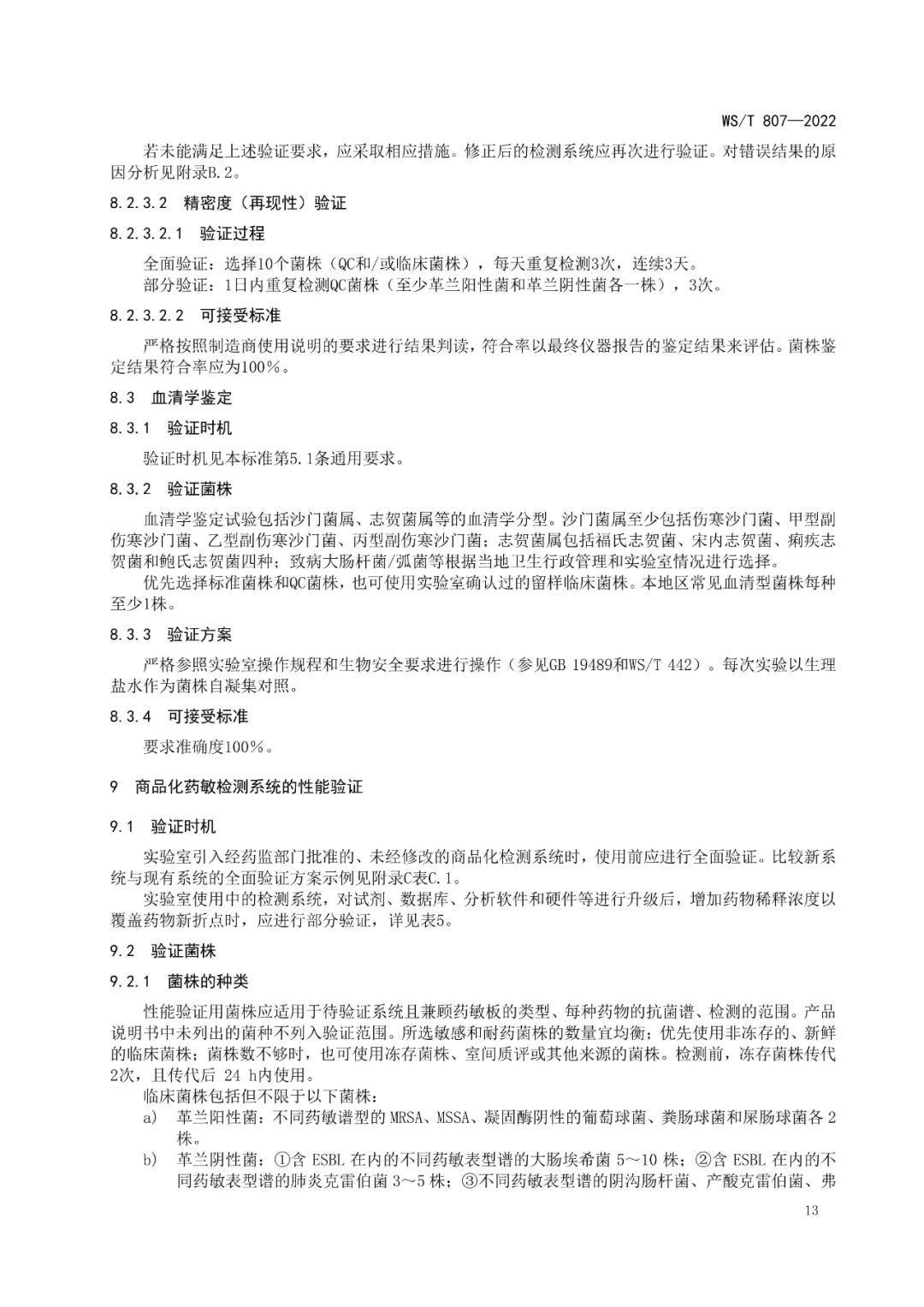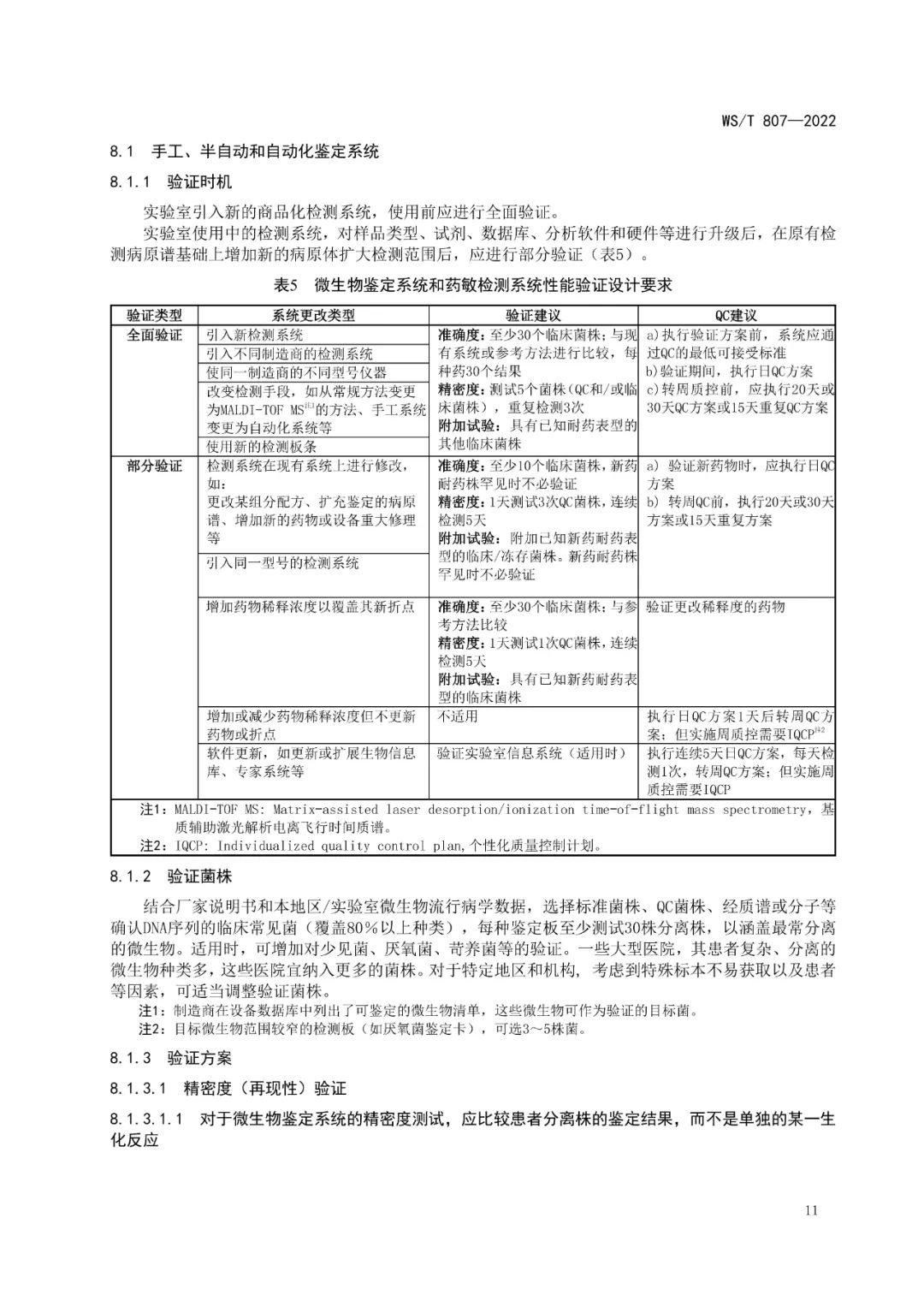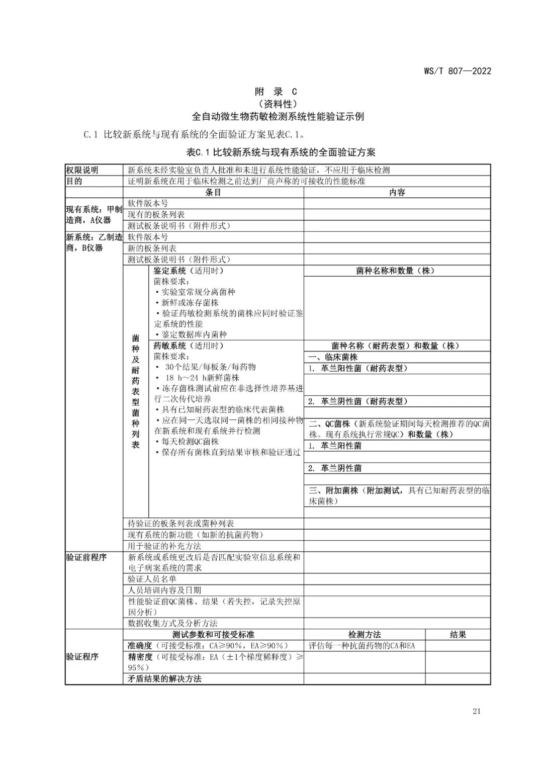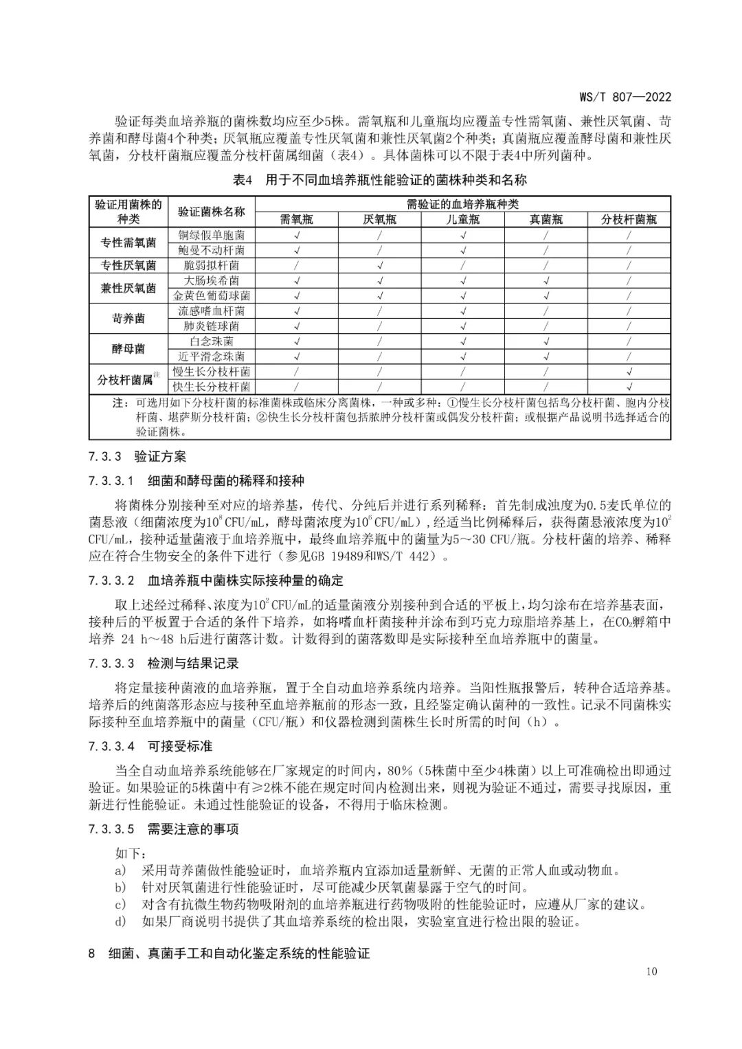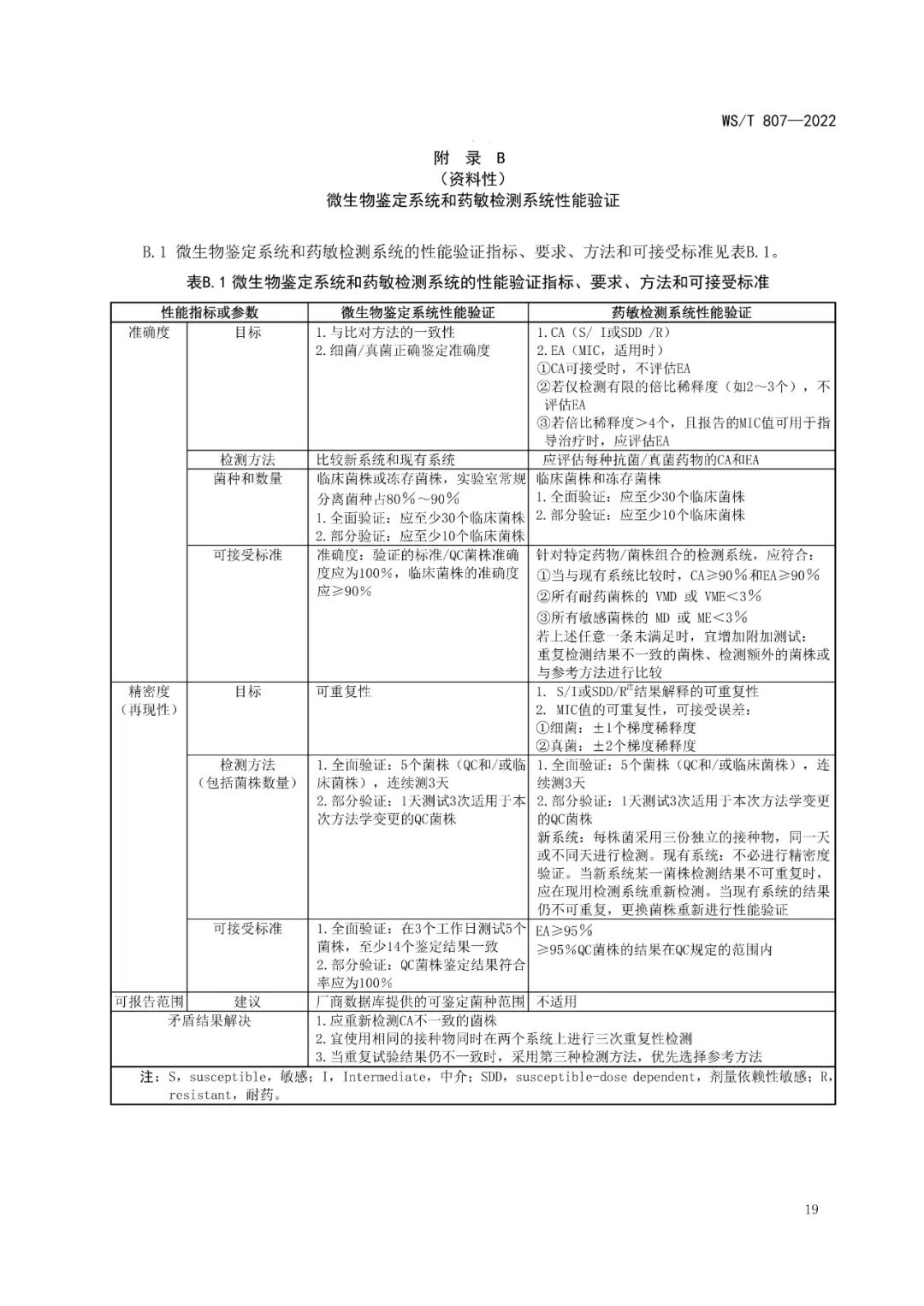 【卫生行业标准】临床微生物培养、鉴定和药敏检测系统的性能验证(WS/T 807-2022)