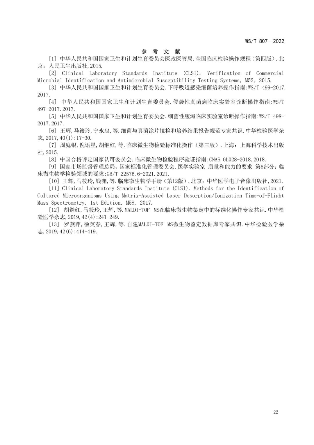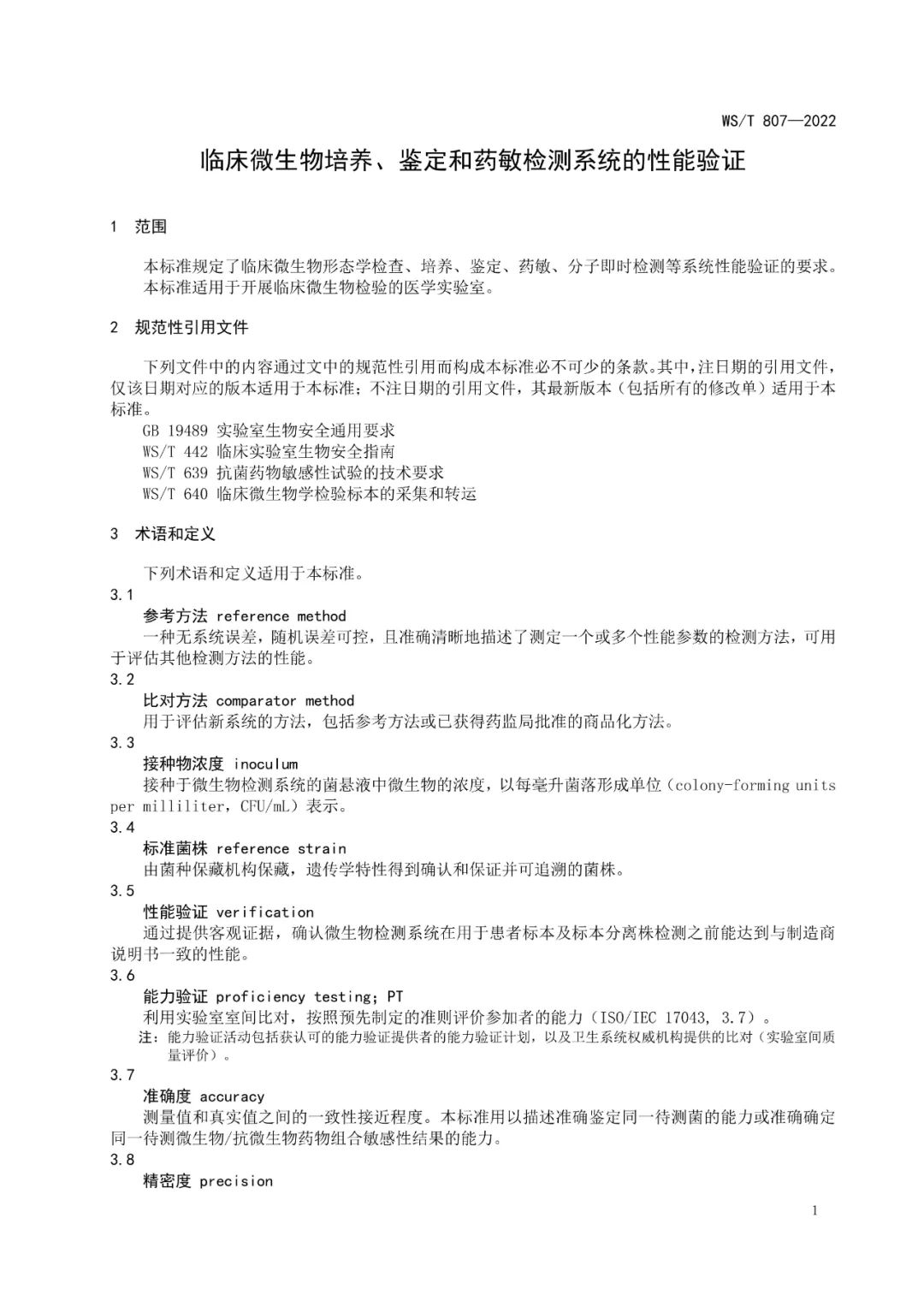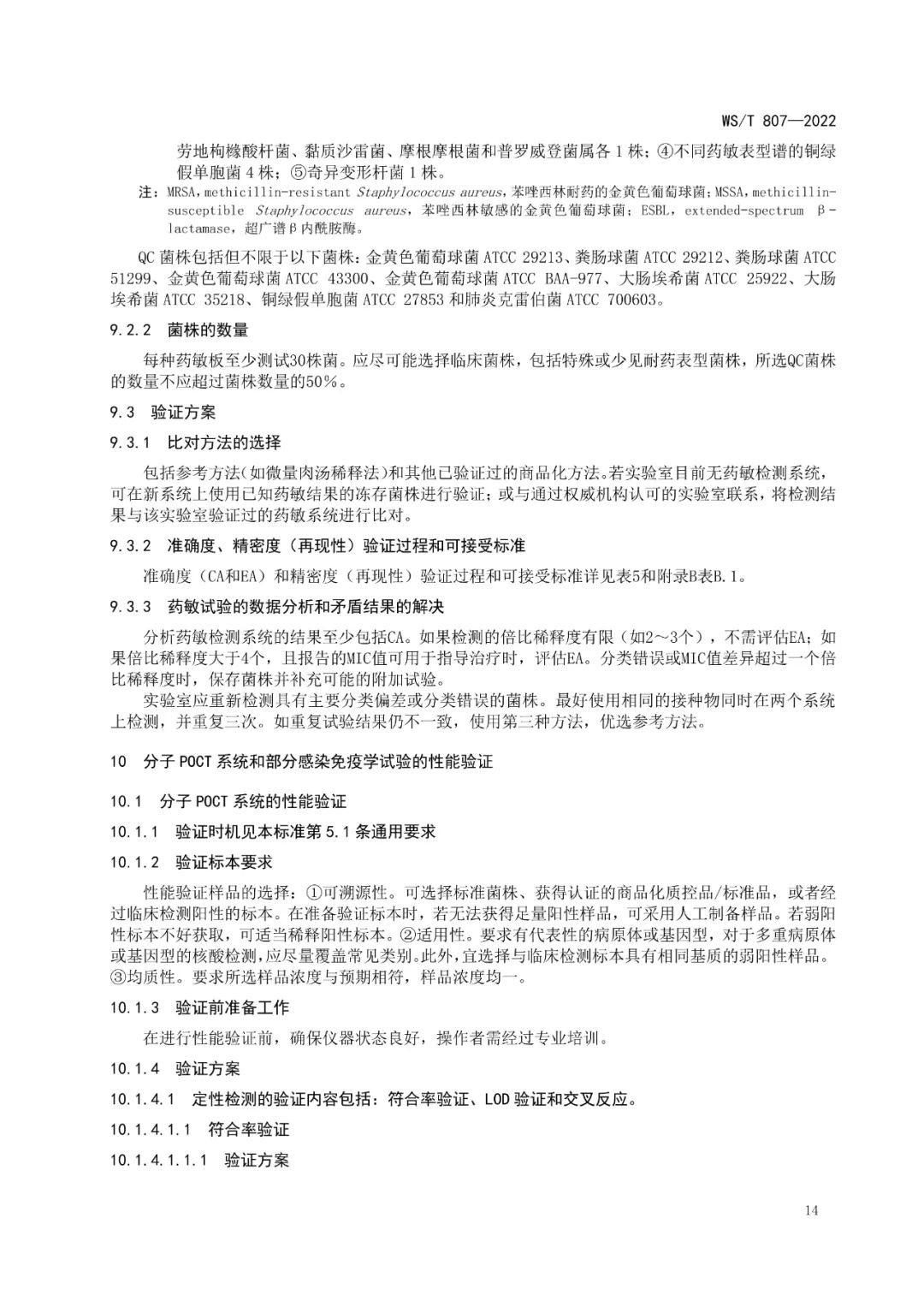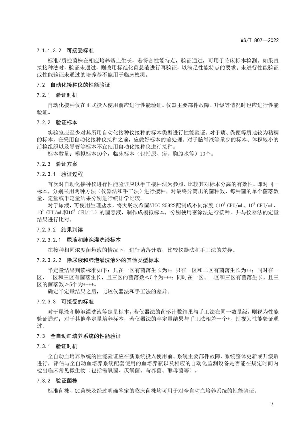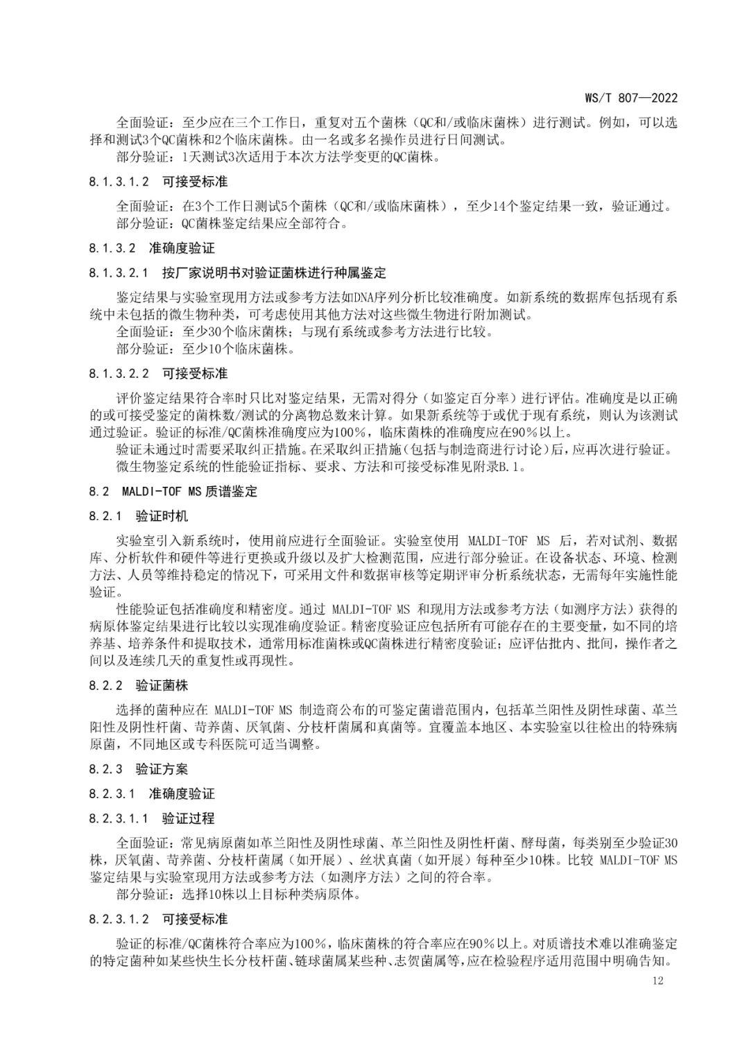 【卫生行业标准】临床微生物培养、鉴定和药敏检测系统的性能验证(WS/T 807-2022)