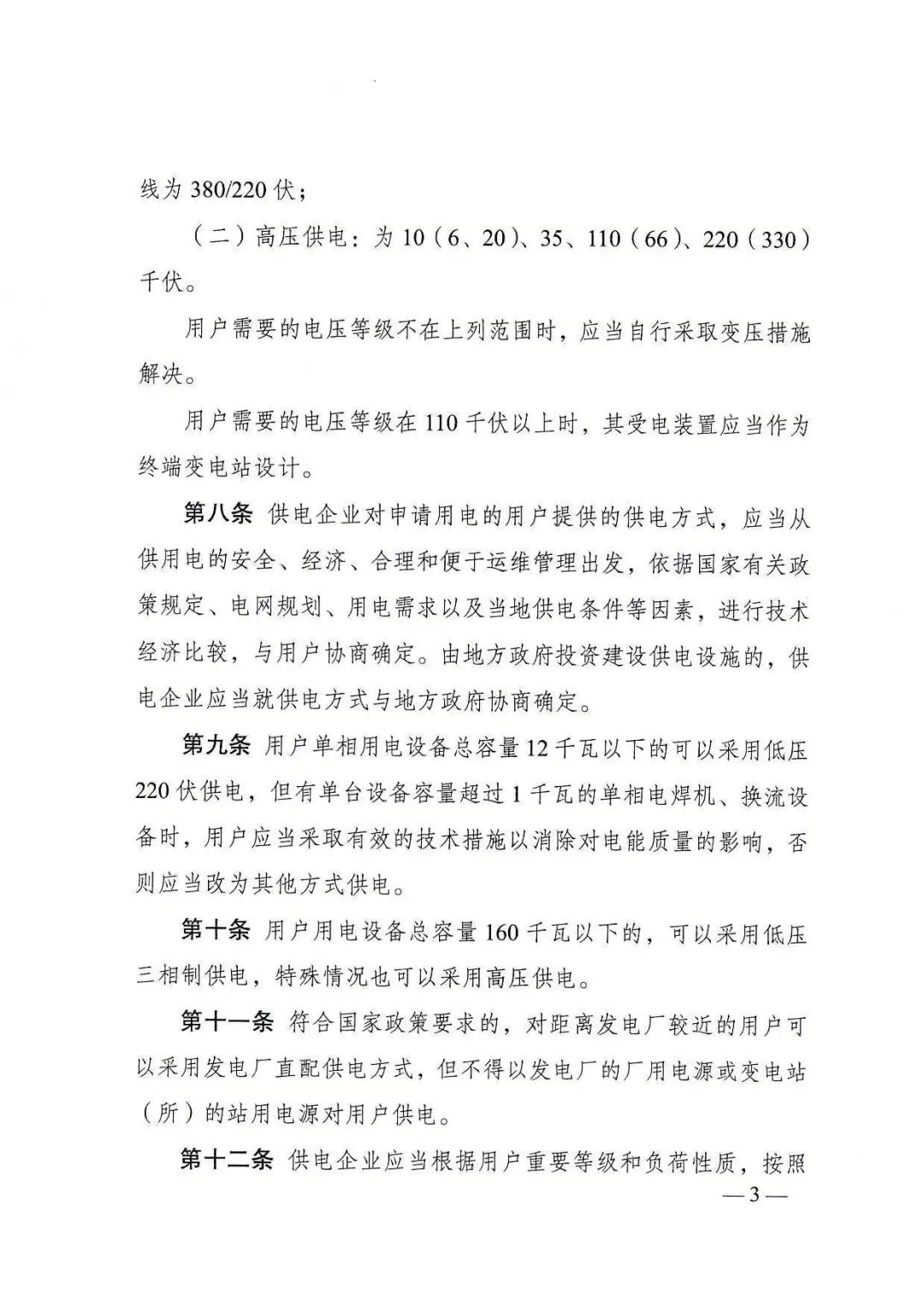 《供电营业规则》