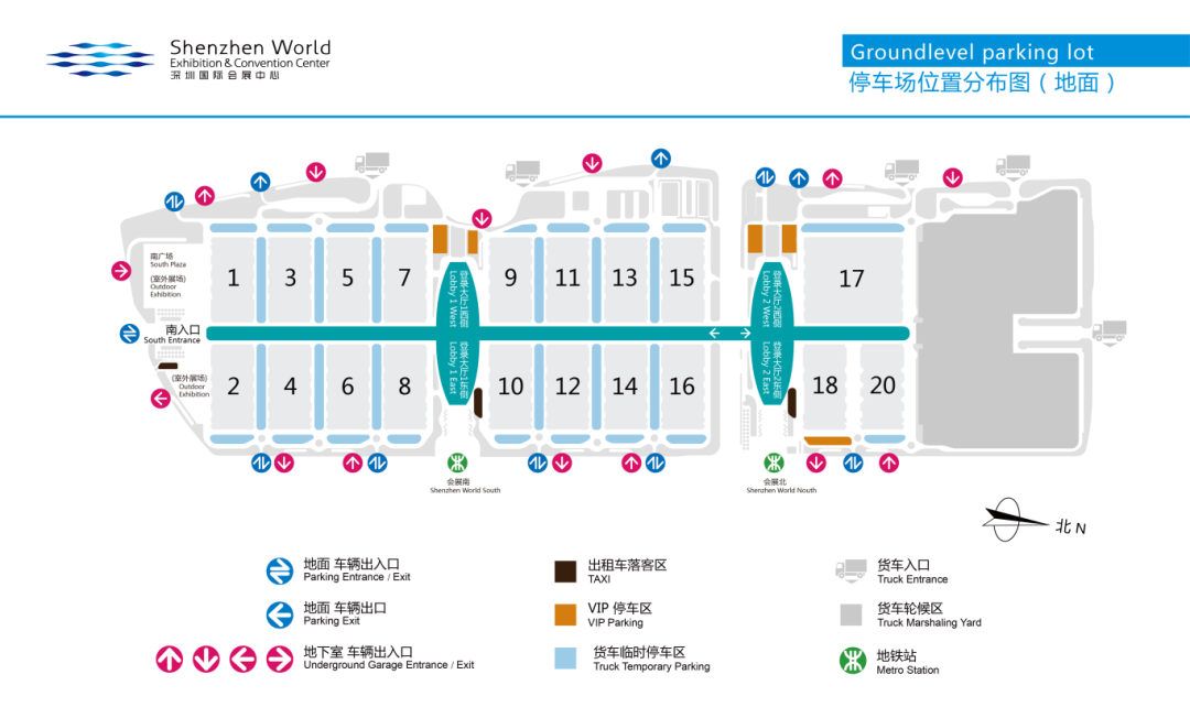 货车轮候区:展馆最北端设货车轮候区,提供1,472个货车位。