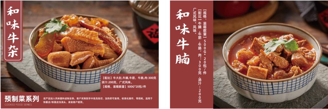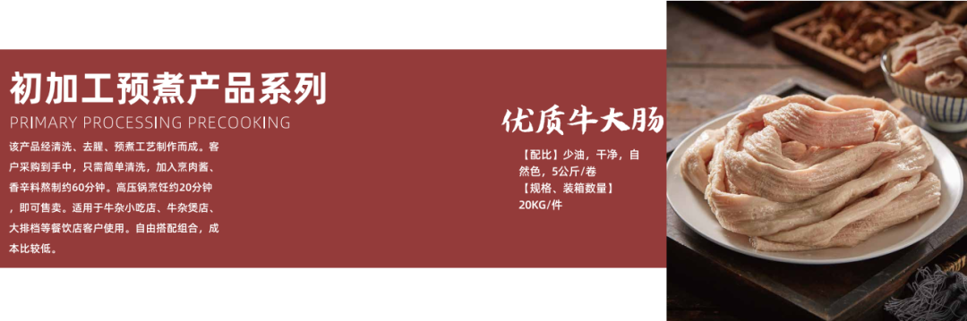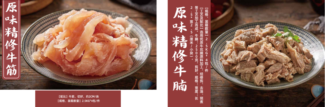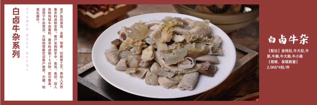按客户需求,又细分分为预制菜系列、白卤牛杂系列、原味精修系列、初加工预煮产品系列等等。