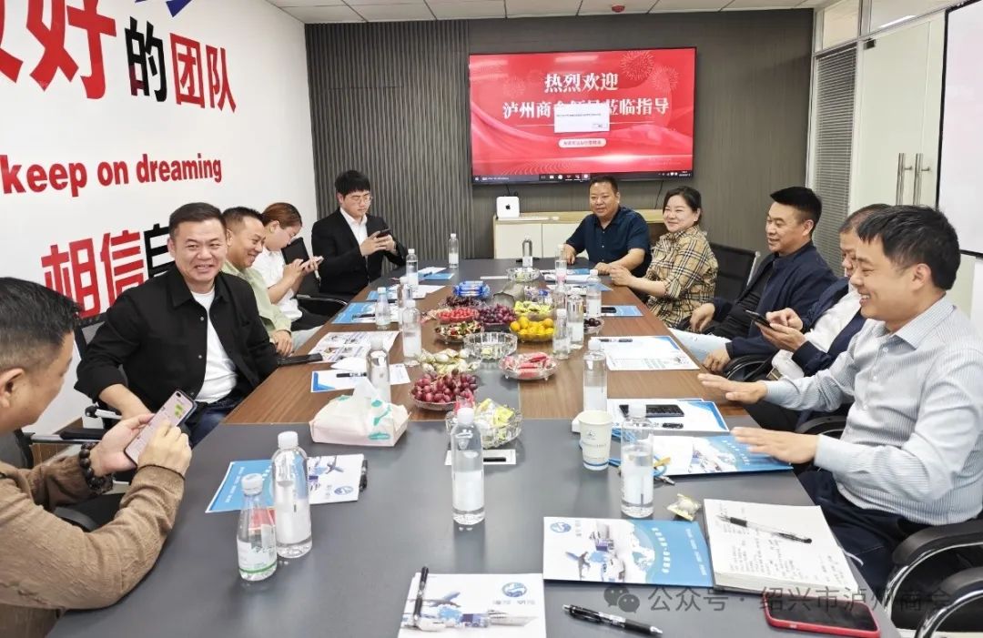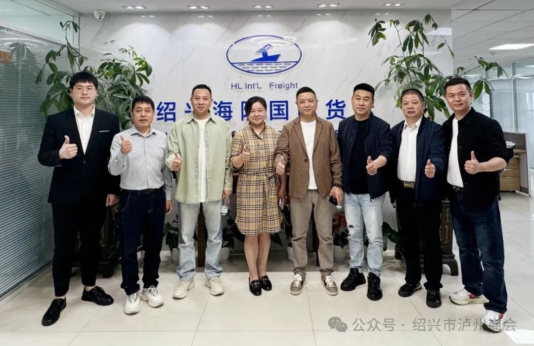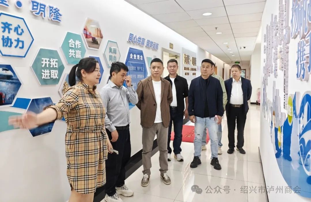 4月19日下午,绍兴市泸州商会执行会长李万武、李雨龙,副执行会长邹洋,监事长舒健、秘书长姜朝树、常务副会长杨敬翔、邱欢以及副会长钟阳彬前往执行会长明春叶女士的企业——绍兴海隆国际货运代理有限公司进行参观交流。
