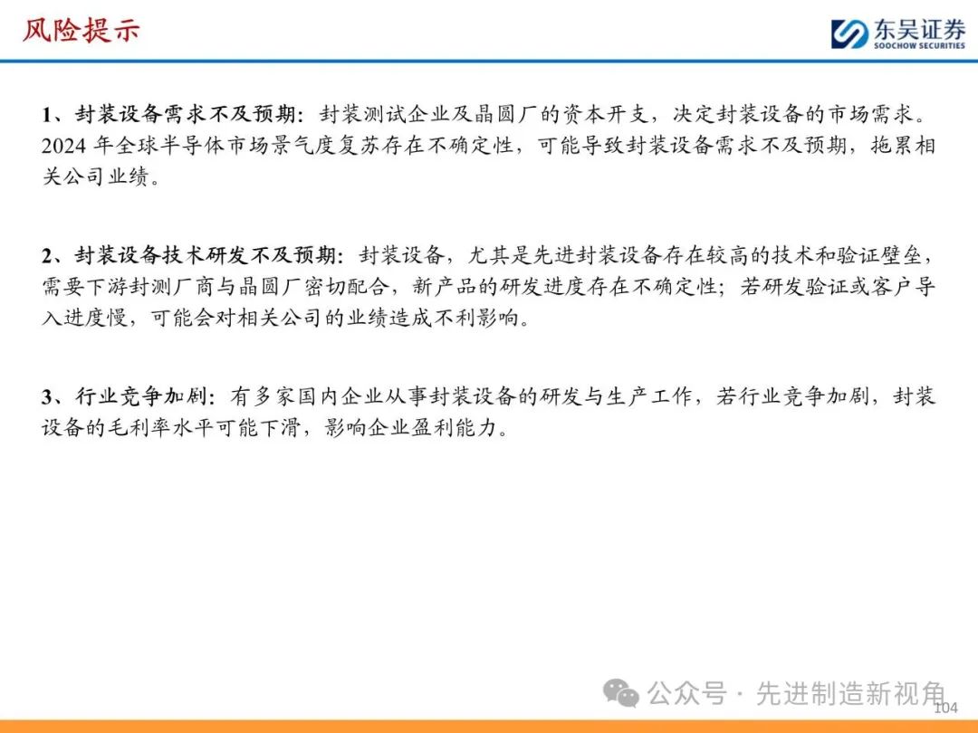 封装设备需求不及预期、封装设备技术研发不及预期、行业竞争加剧。