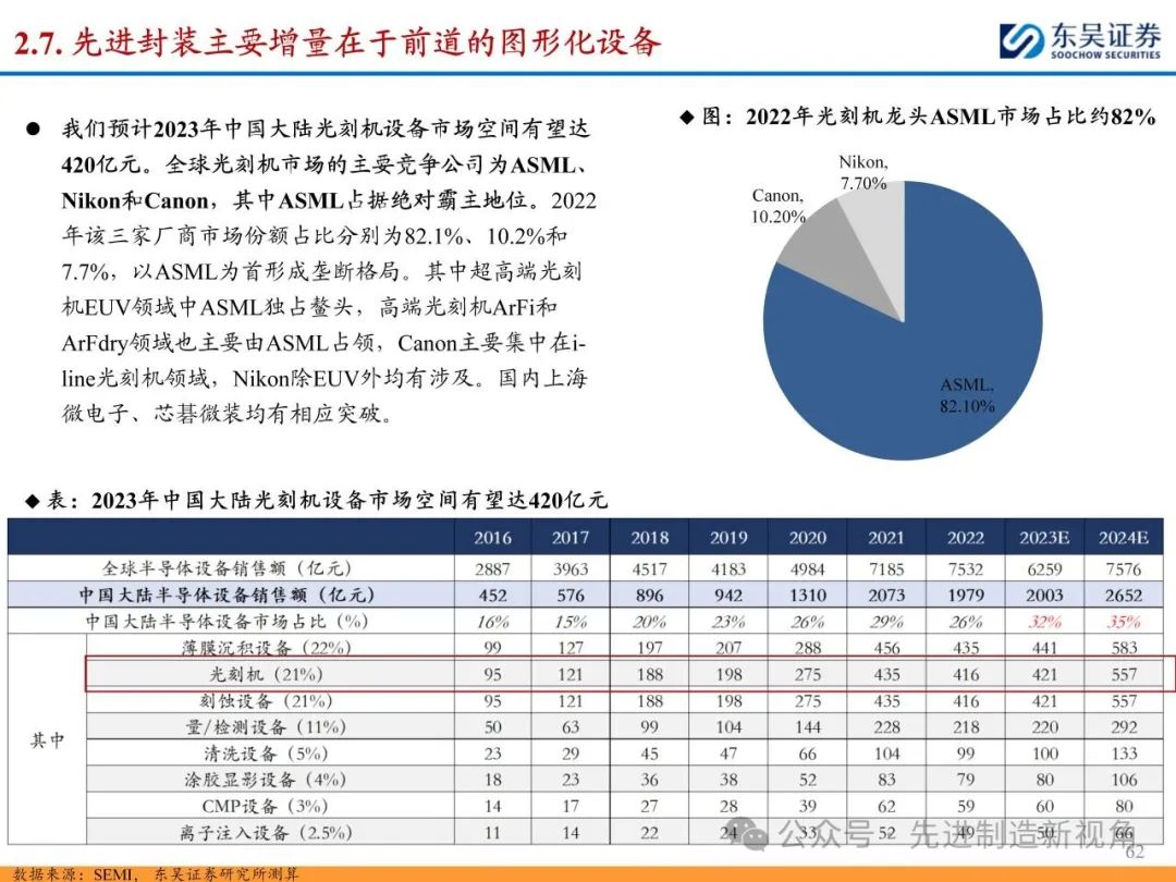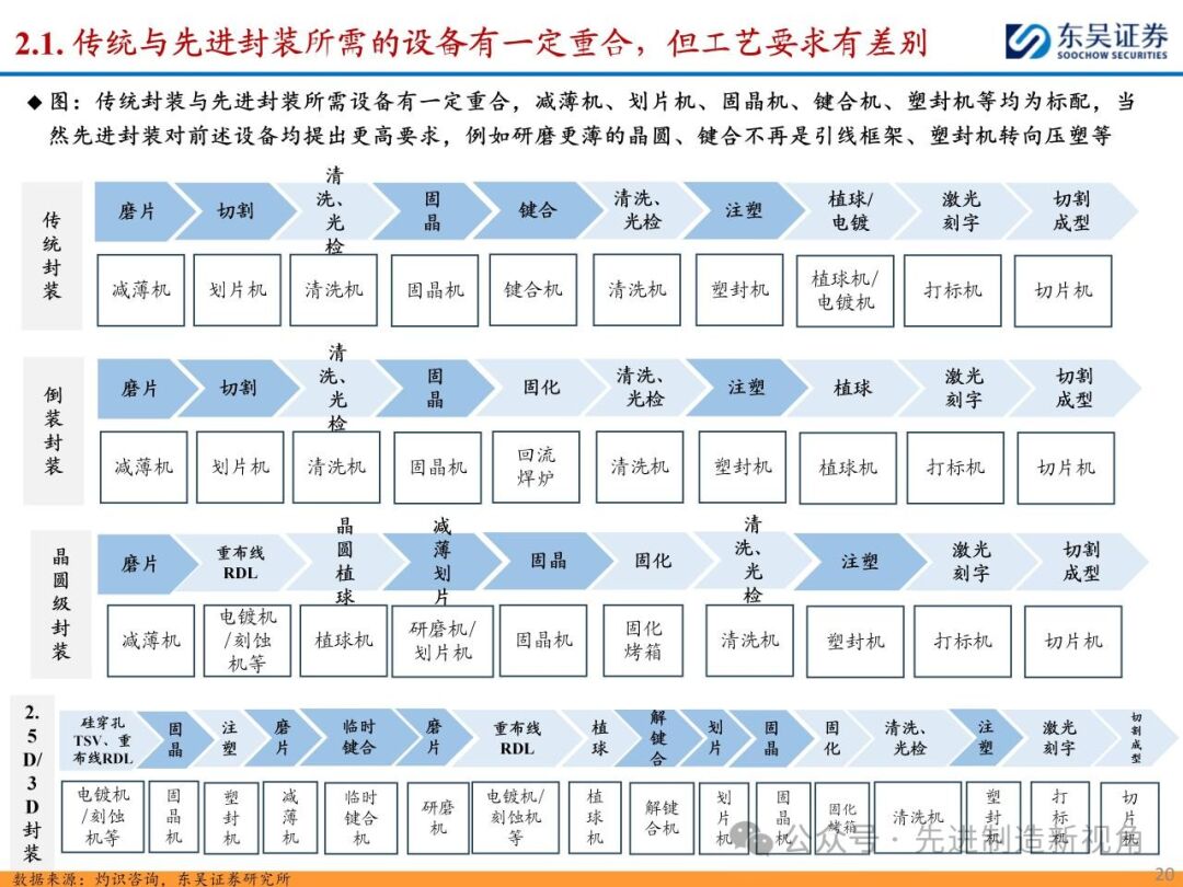 3 传统&先进封装所需设备有一定重合但工艺要求有所变化,设备增量主要在于前道图形化设备