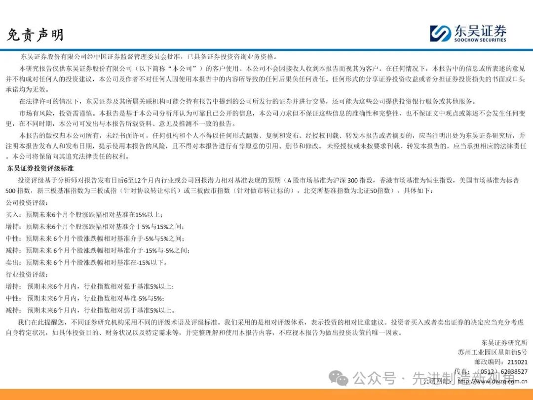 本公众订阅号(微信号:先进制造新视角)由东吴证券研究所机械团队设立,系本研究团队研究成果发布的唯一订阅号。