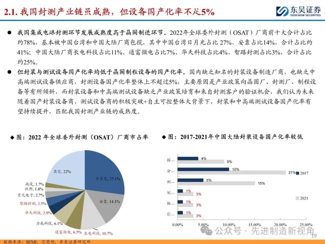 2 我国封测产业链较为成熟,但封装设备国产化率较低