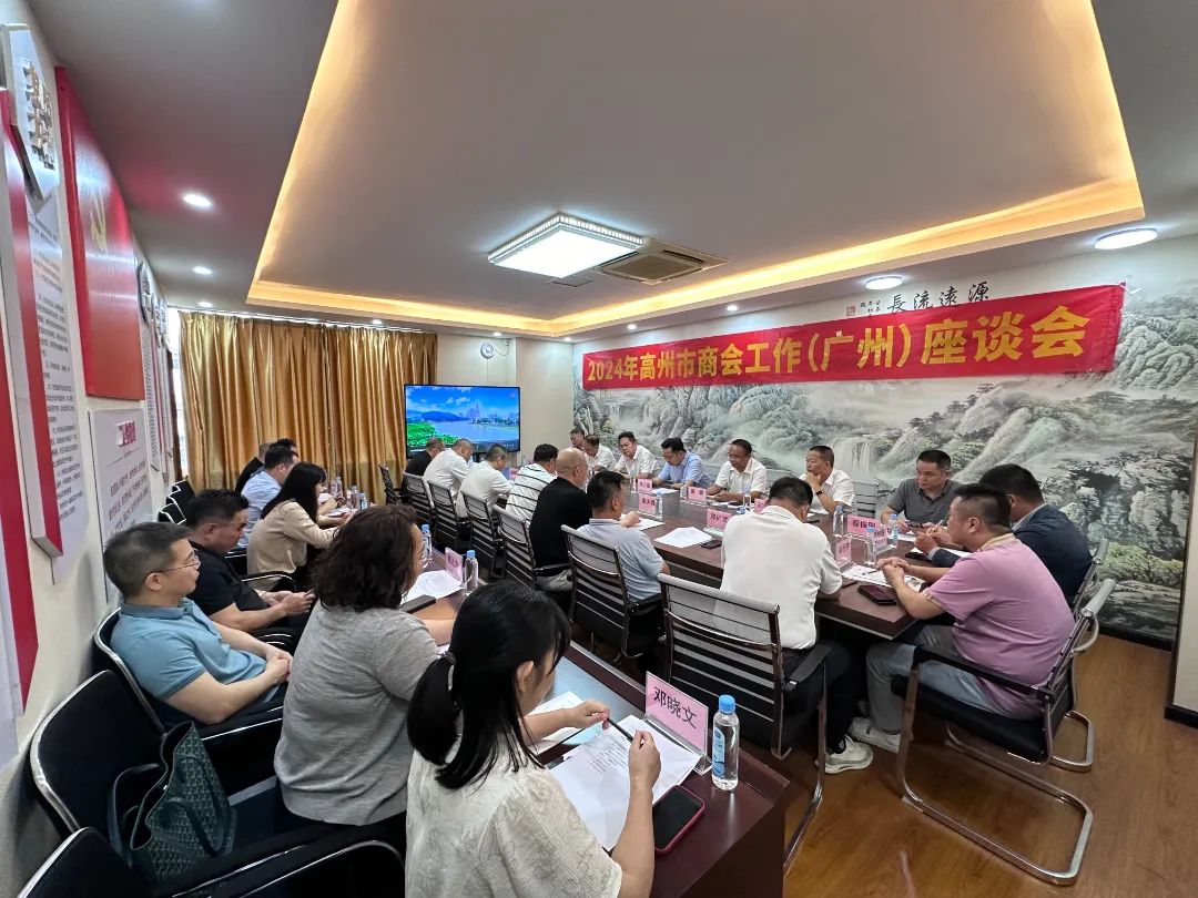 我会首席会长邓胜均,执行会长陈福权、梁庆强、邓闪波、龙国胜,秘书长许飞,副监事长李智,党支部书记兼副秘书长欧欣怡,常务副会长彭钢,副会长车行宇、曾柏健、邓晓文、吴钦柱、何文琳、谭达全、黄春兰、袁进波、黄军章代表商会对来访领导热情接待,并共同召开2024年高州市商会工作(广州)座谈会。