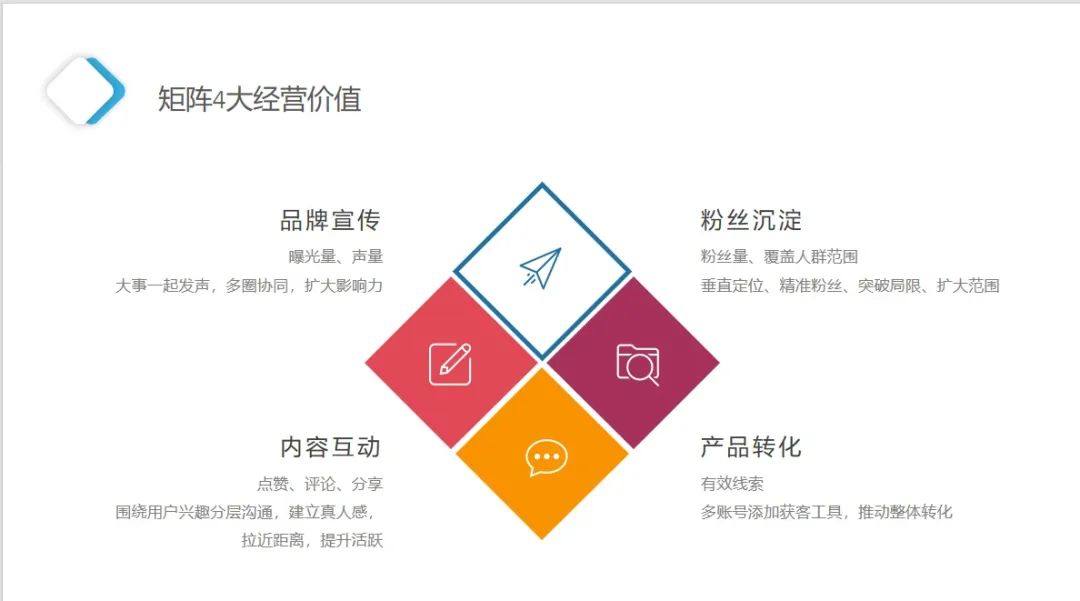 搭建全方位的自媒体矩阵可以拓宽触达用户的方式,通过多个渠道,去涵盖更多用户群体,也可以在各自细分领域深耕细作,深化影响,细分市场,精细化运营。
