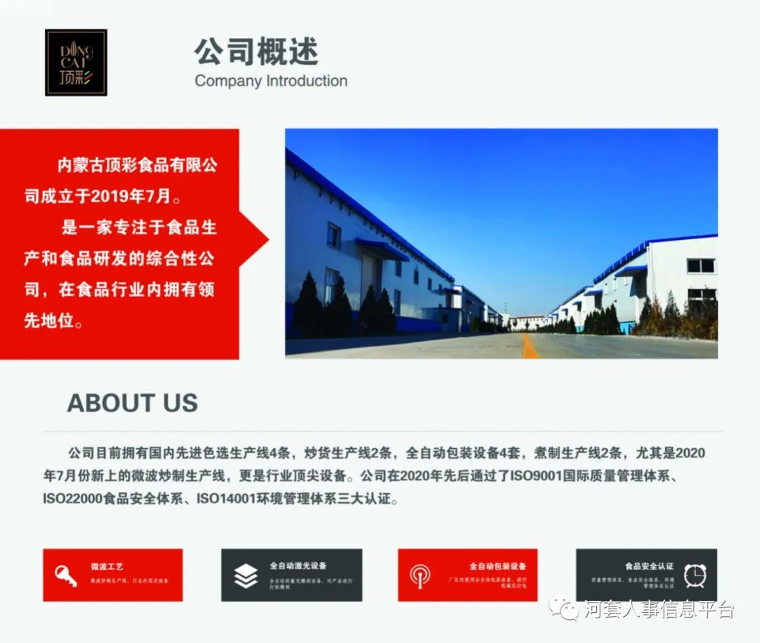 工作地点:巴彦淖尔东开发区顶彩食品有限公司