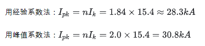 在实用中,一般按峰值系数法来计算冲击短路电流峰值。