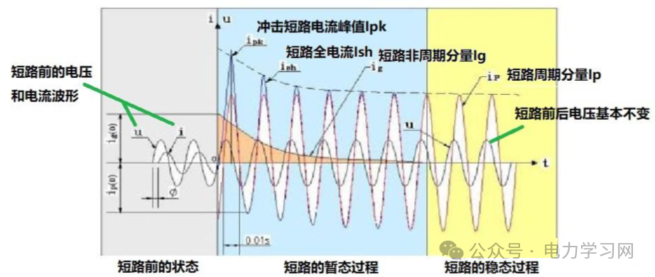 当非周期分量(直流分量)衰减完毕后,系统中只剩下周期分量交流分量),它就是短路电流的稳态值。短路电流稳态值的有效值就是Ik。