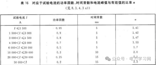 短路电流最大值Ipk与短路电流稳态值Ik之比叫做峰值系数n。峰值系数n按经验法在低压配电网n=1.84,高压输送电和配电网中n=2.55。另外,还可按国家标准GB14048.1-2012《低压开关设备和控制设备 第1部分:总则中给出的数值来计算,数值表如下: