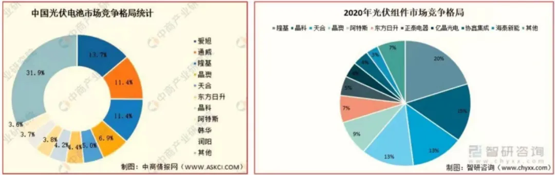 用光伏行业的竞争再深入看看。光伏电池市场的竞争格局,你会看到通威、隆基综合排名在前面,但是如果单看组件市场,隆基变得非常重要。