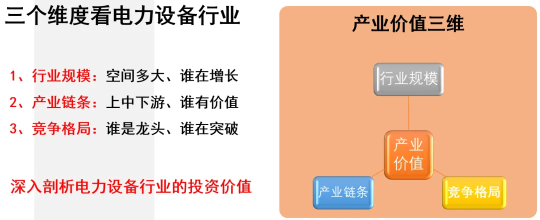 电力设备行业的分析,我们从三部分来分析,就是产业概况、价值框架以及典型公司。
