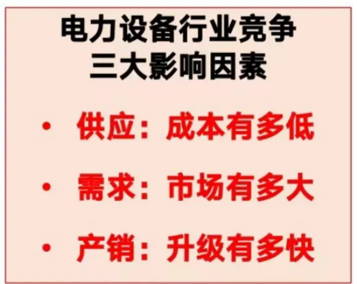 影响电力设备行业竞争的三大影响因素:供应的成本有多低、市场的需求有多大、产品技术的升级有多快。