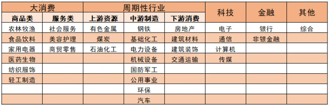 看一下申万行业的分类: