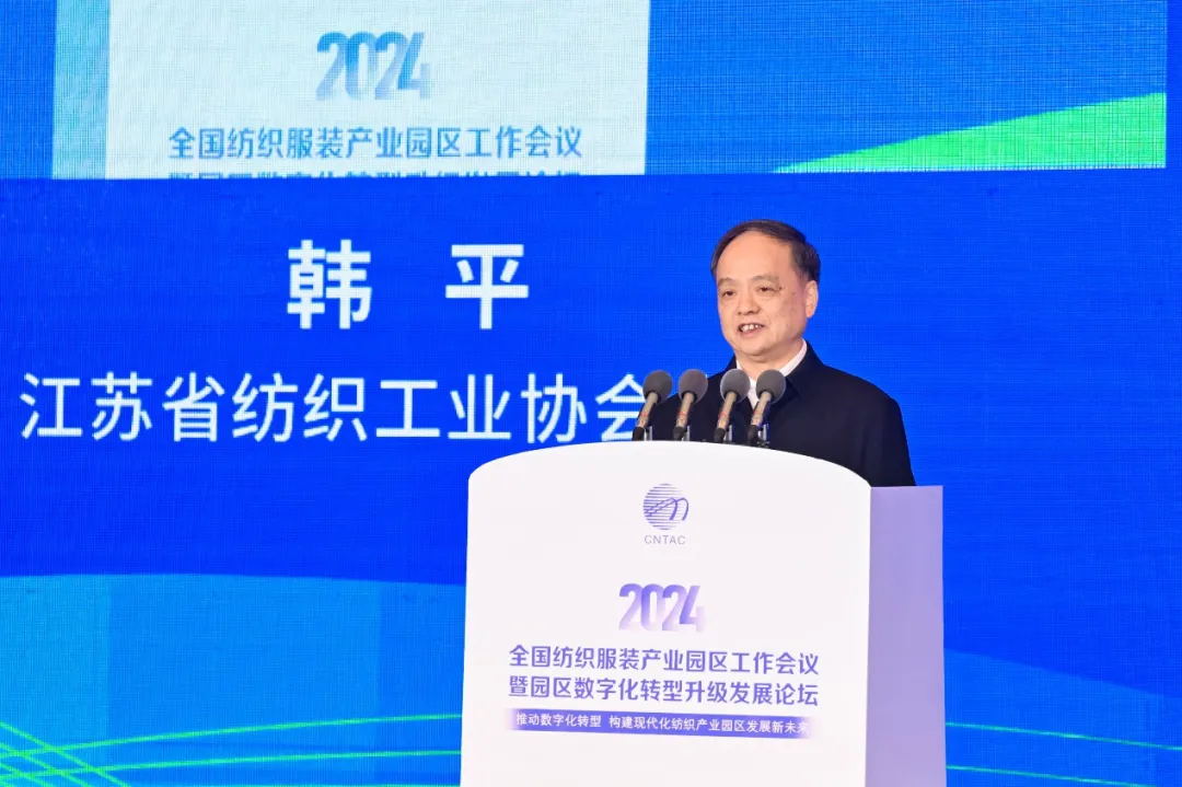 江苏省纺织工业协会会长韩平在致辞时谈到,江苏纺织产业历史悠久,产业门类齐全,是我国万亿纺织大省之一。纺织产业也是江苏省的六大经济支柱之一。2023年,江苏纺织工业继续保持了万亿销售规模,全省7317家规上企业实现营业收入10249.7亿元,同比增长7.4%;利润总额396.4亿元,同比增长17.9%。