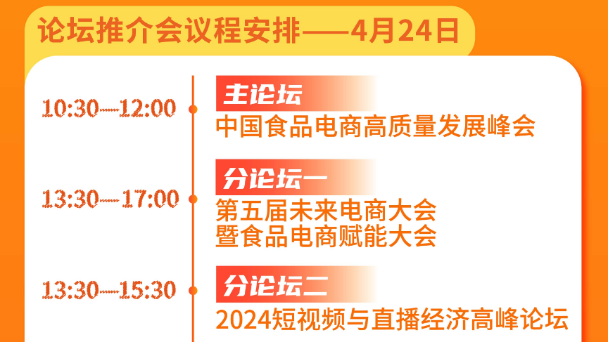 2024中国(杭州)食品电商博览会”将于4月24日~26日在杭州国际博览中心隆重开幕,4大展区、8大主题电商论坛免费对外开放,提前抢票卡位!