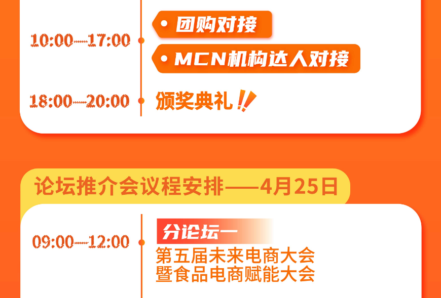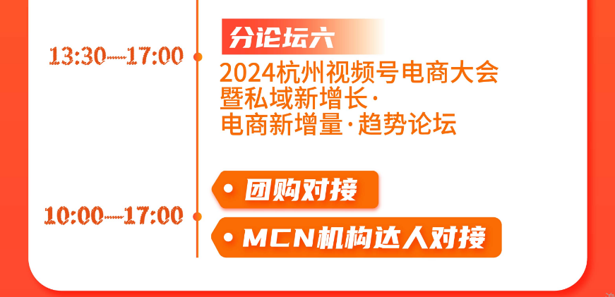 为好产品嫁接优质渠道,实现“人-货速配”,解决供需问题。大会现场将举办2大渠道对接会,包括MCN机构达人对接会和私域团购对接会,在对接环节通过双方一对一当面洽谈的形式,为渠道和商家直接搭建高效的对接场景,提高对接效率,一站式解决供需问题。