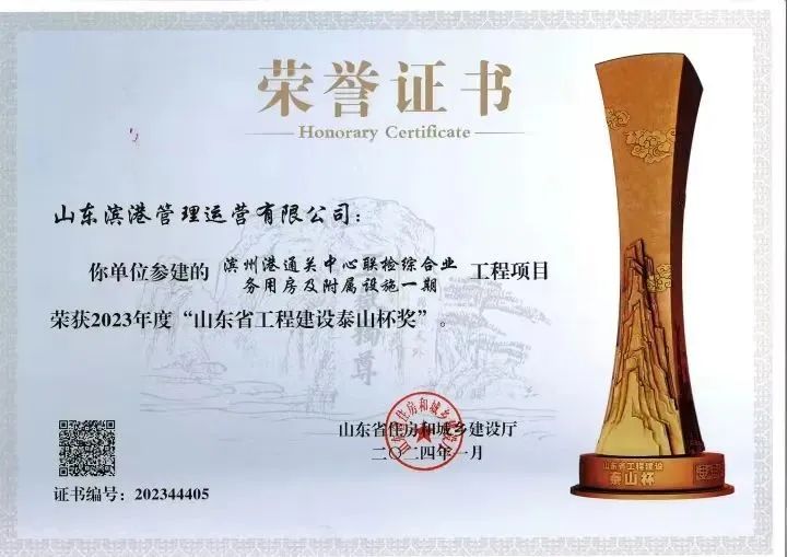 山东省住房和城乡建设厅发布了《关于表彰2023年山东省工程建设泰山杯奖的通报》,滨州交投集团权属山东滨港管理运营有限公司参建的滨州港通关中心联检综合业务用房及附属设施一期工程项目荣获2023年度“山东省工程建设泰山杯奖”。>>>更多内容,点击阅读