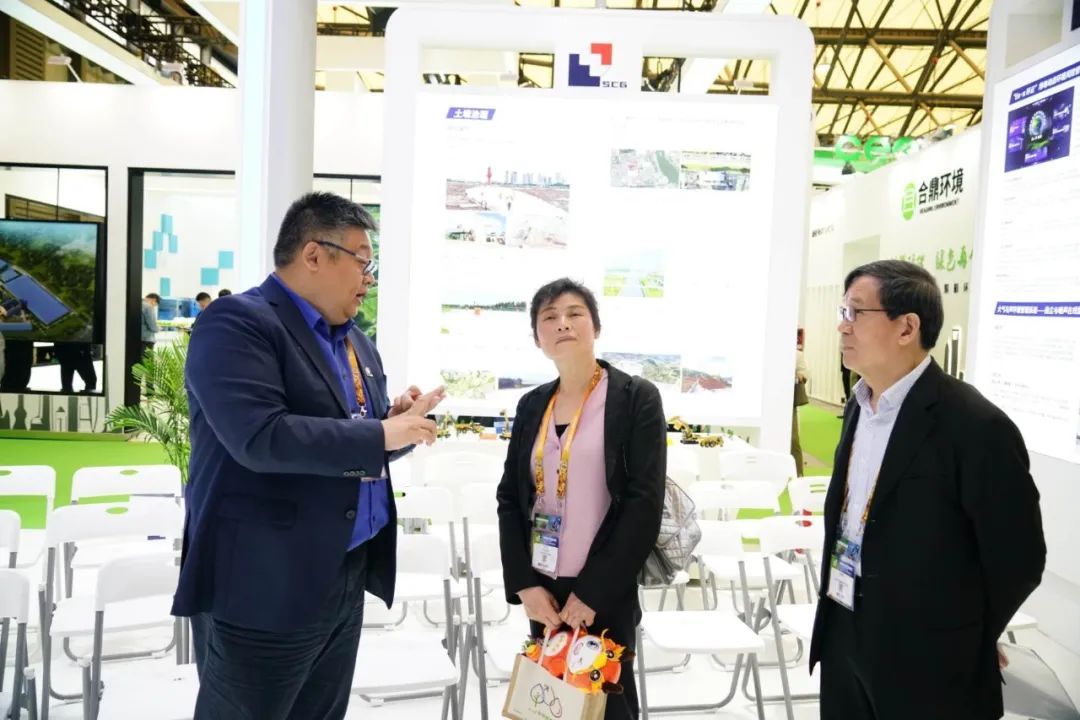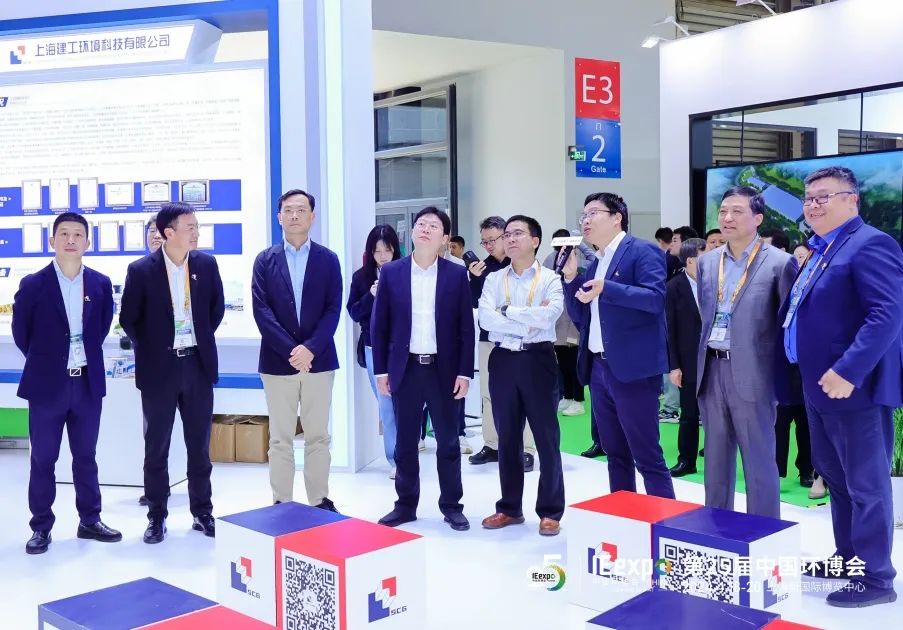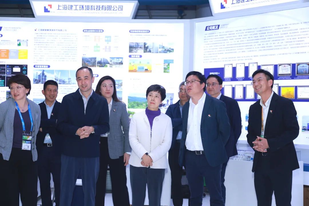 会展期间,上海市生态环境局副局长柏国强、上海建工集团副总裁王志刚、上海市生态环境局二级巡视员屈计宁等市、区局领导莅临环境科技展台参观指导。