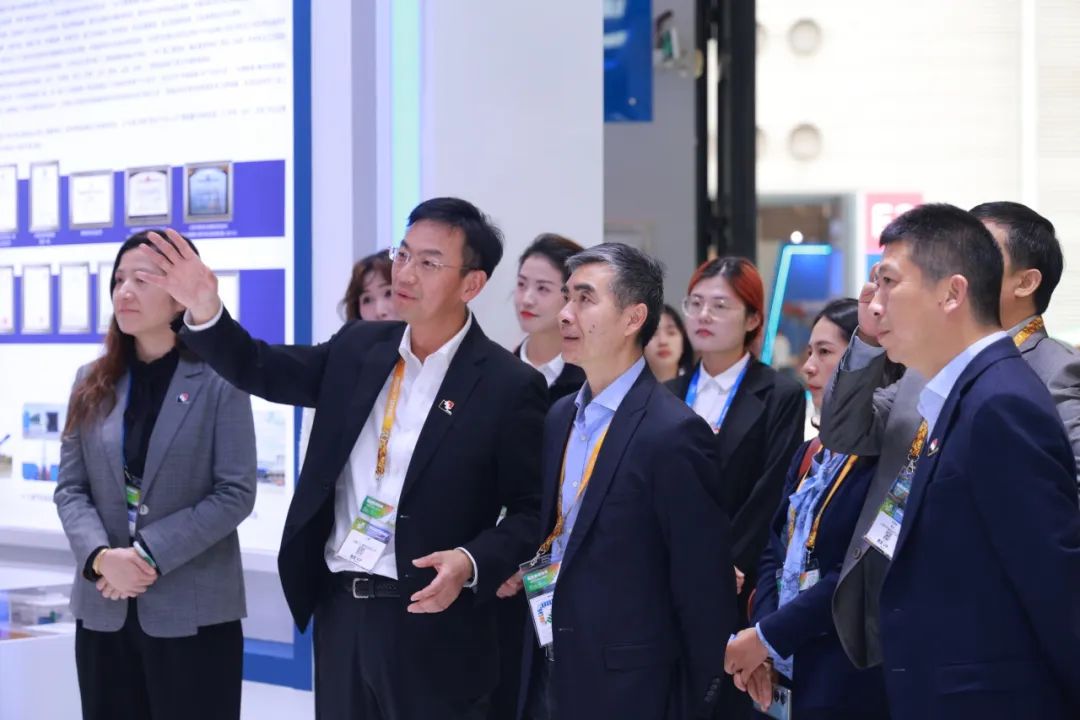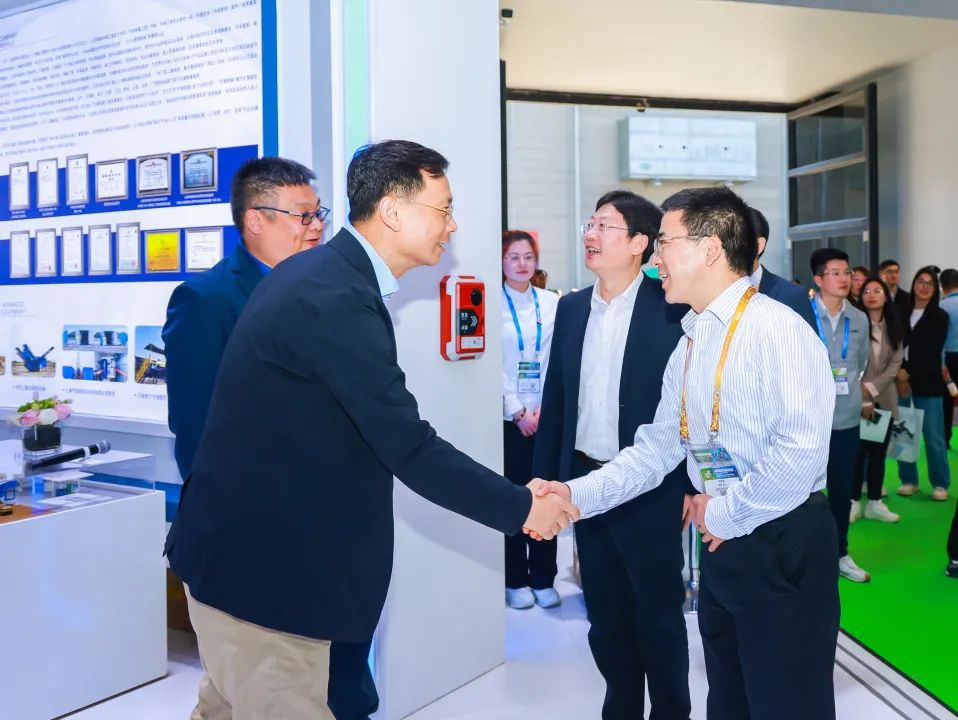 同日下午,上海实业集团董事长冷伟青一行莅临环境科技展位参观指导,环境科技党委副书记、总裁王磊,副总裁马烈,总工程师张峰等接待来访一行。双方围绕主营业务、核心优势进行深入交流,一致认为,双方拥有坚实的业务基础和广阔合作空间,共同表示未来将围绕各自优势资源,深化业务联动,为各自企业高质量发展持续赋能。